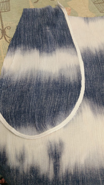 This one was also the most challenging as the crinkled gauze tended to stretch out of shape very easily. That made matching the stripes at the side seams particularly challenging!
